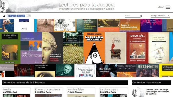 También tiene su propia página de Facebook Lectores para la Justicia, que no solo constituye una vía adicional de publicación de los contenidos y las actividades del grupo, así como de intercambio con quienes se acercan a su espacio, sino que ha permitido ensayar allí distintas propuestas de invitación a la lectura (por ejemplo: “lectura en el arte”, “bibliotecas escondidas”, referencias a otros proyectos de promoción de la lectura).