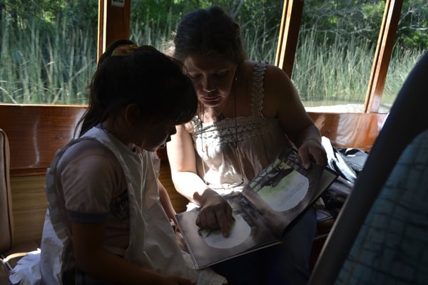 En cada lancha viaja un docente mediador que coordina la biblioteca y los diferentes talleres, como escritura de poemas, confección de muñecos de papel a partir de los personajes de un cuento, mandalas y recopilación de versos tradicionales. También se inauguró un cuaderno de préstamos y recomendaciones de los pequeños lectores.
